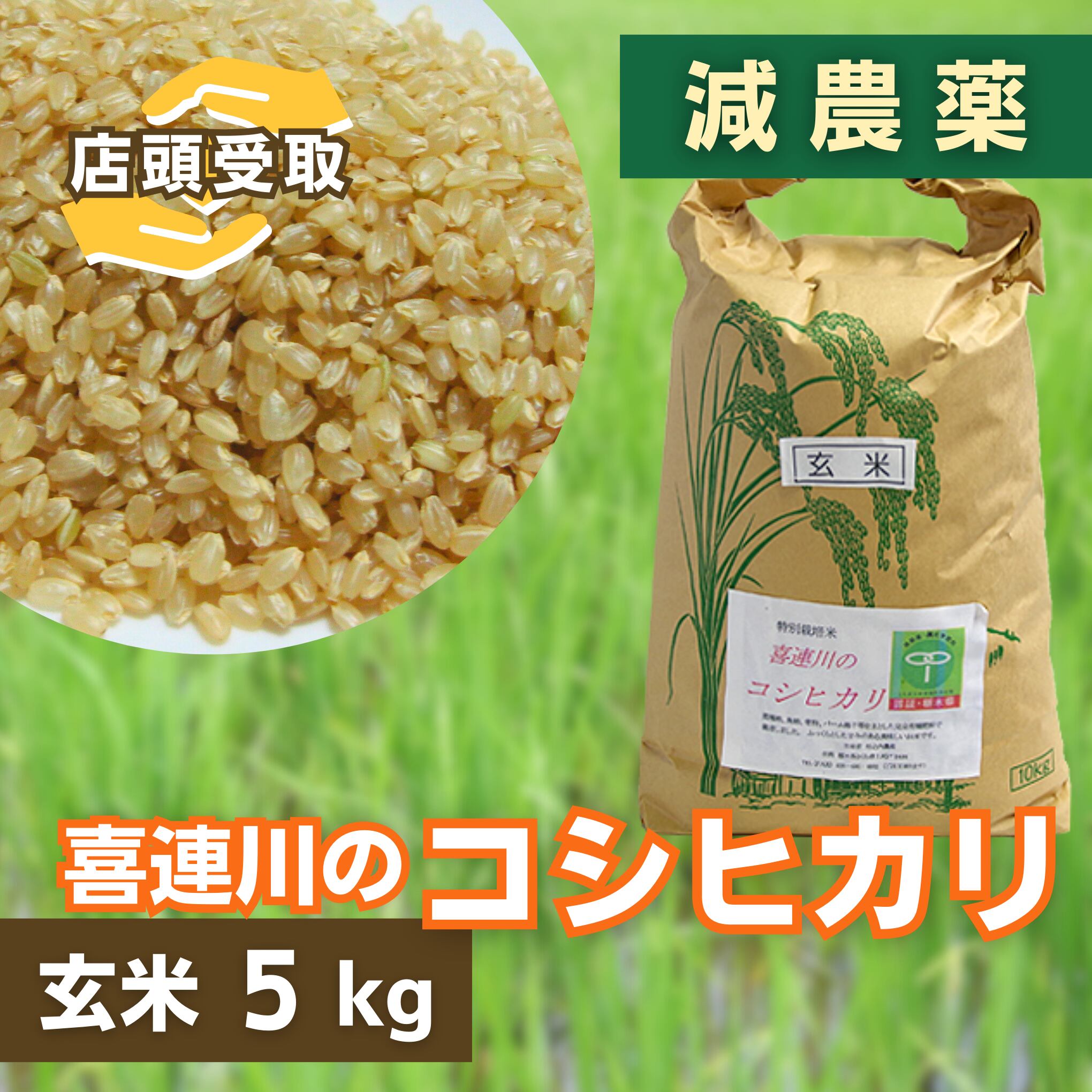 【店頭受取】新米 令和7年産 喜連川のコシヒカリ 玄米5kg