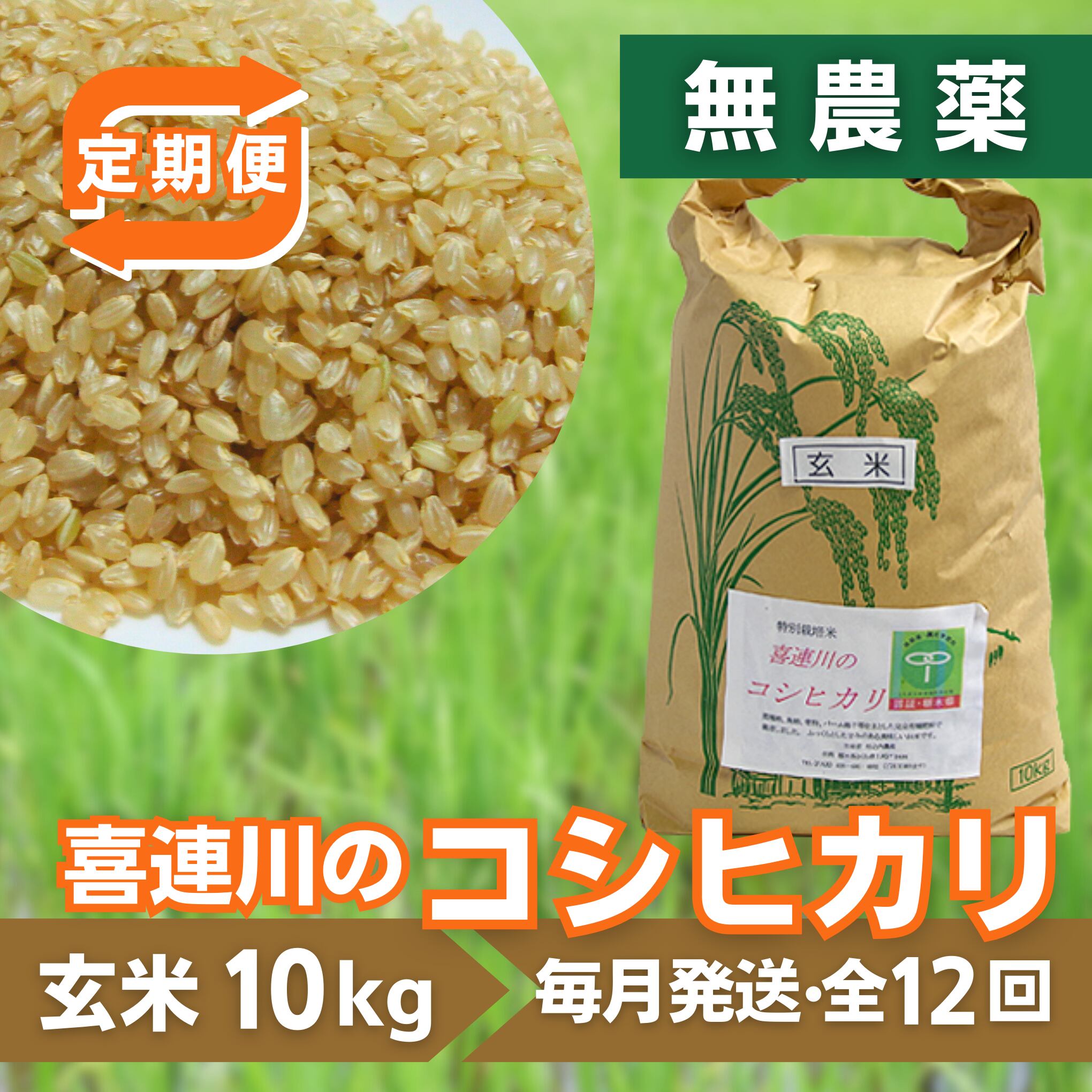【定期便:全12回】無農薬 喜連川のコシヒカリ 玄米10kg